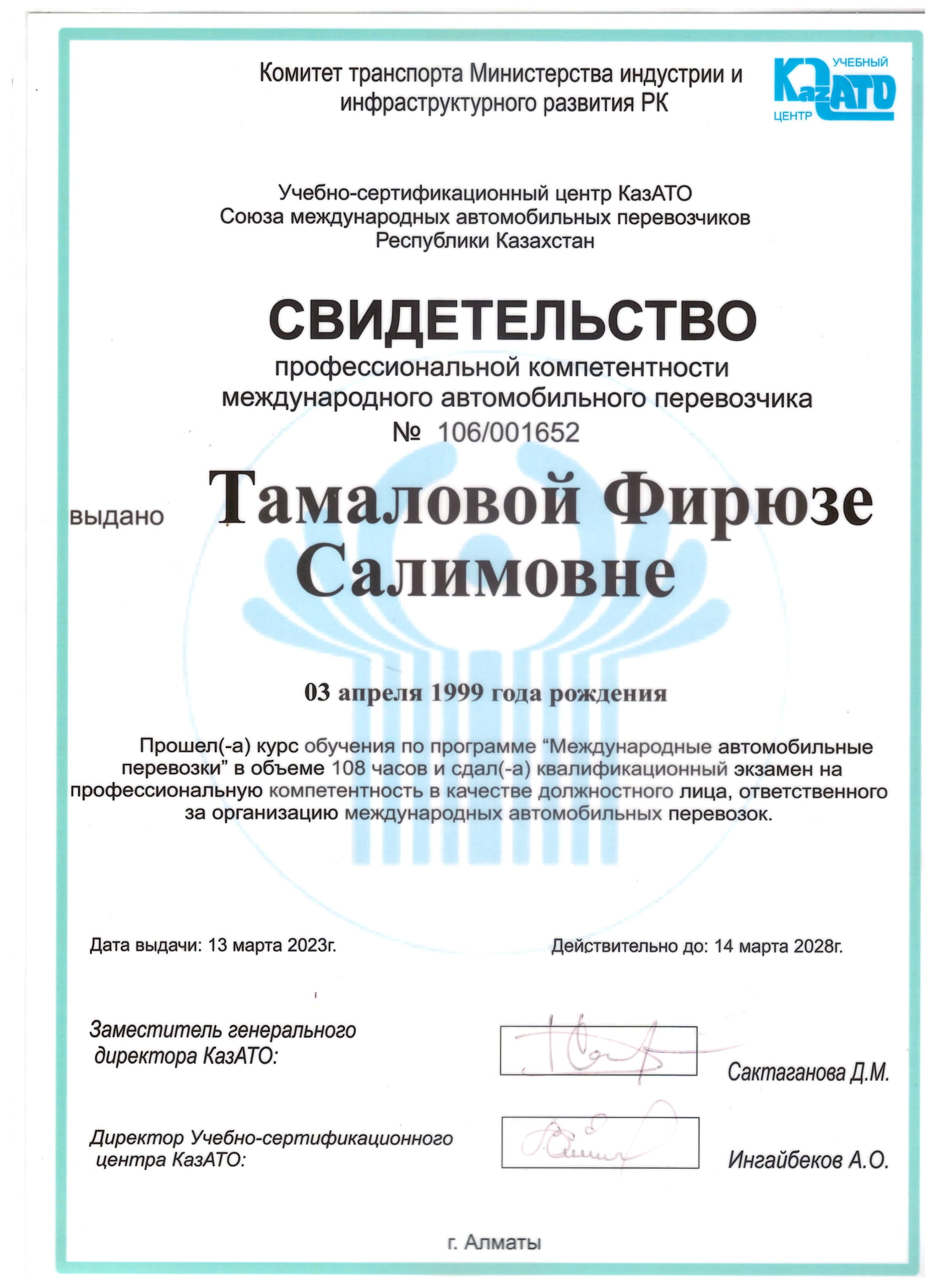 - Сақтандыру, GPS-мониторинг және халықаралық стандарттарды сақтау